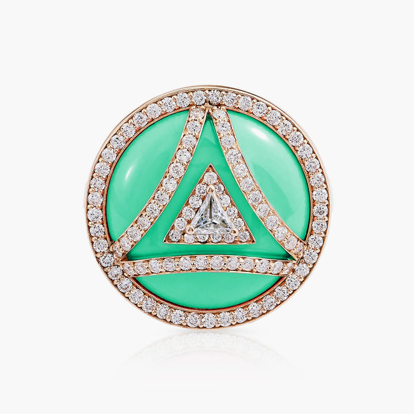 Bonbon ring in 18ct yellow gold, with aqua enamel and glittering diamonds, including one in our signature Maya cut