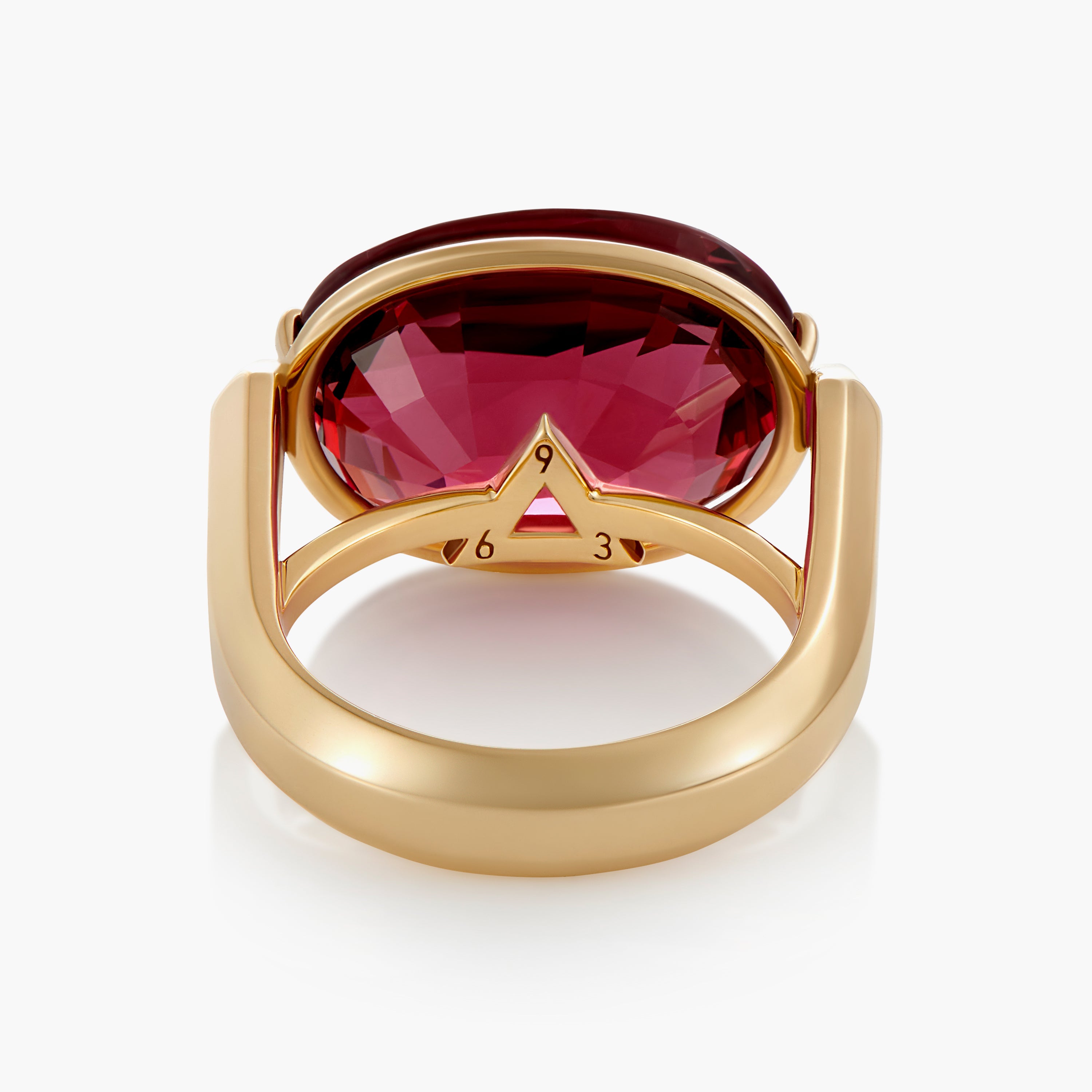 The underside of the ring features intricate triangular detailing, which homage to our signature cut. Most prominently though, the ring is engraved with the numbers 369.