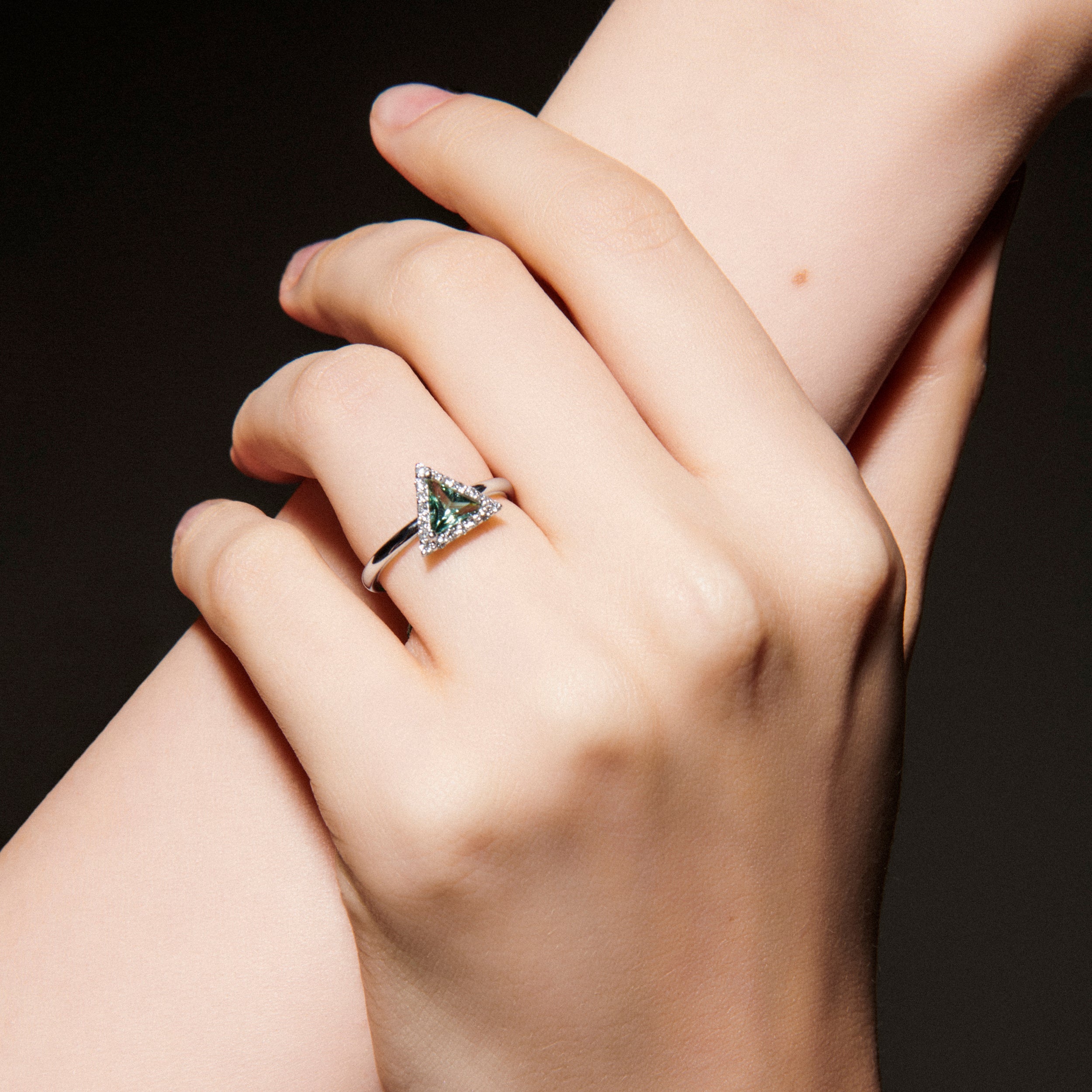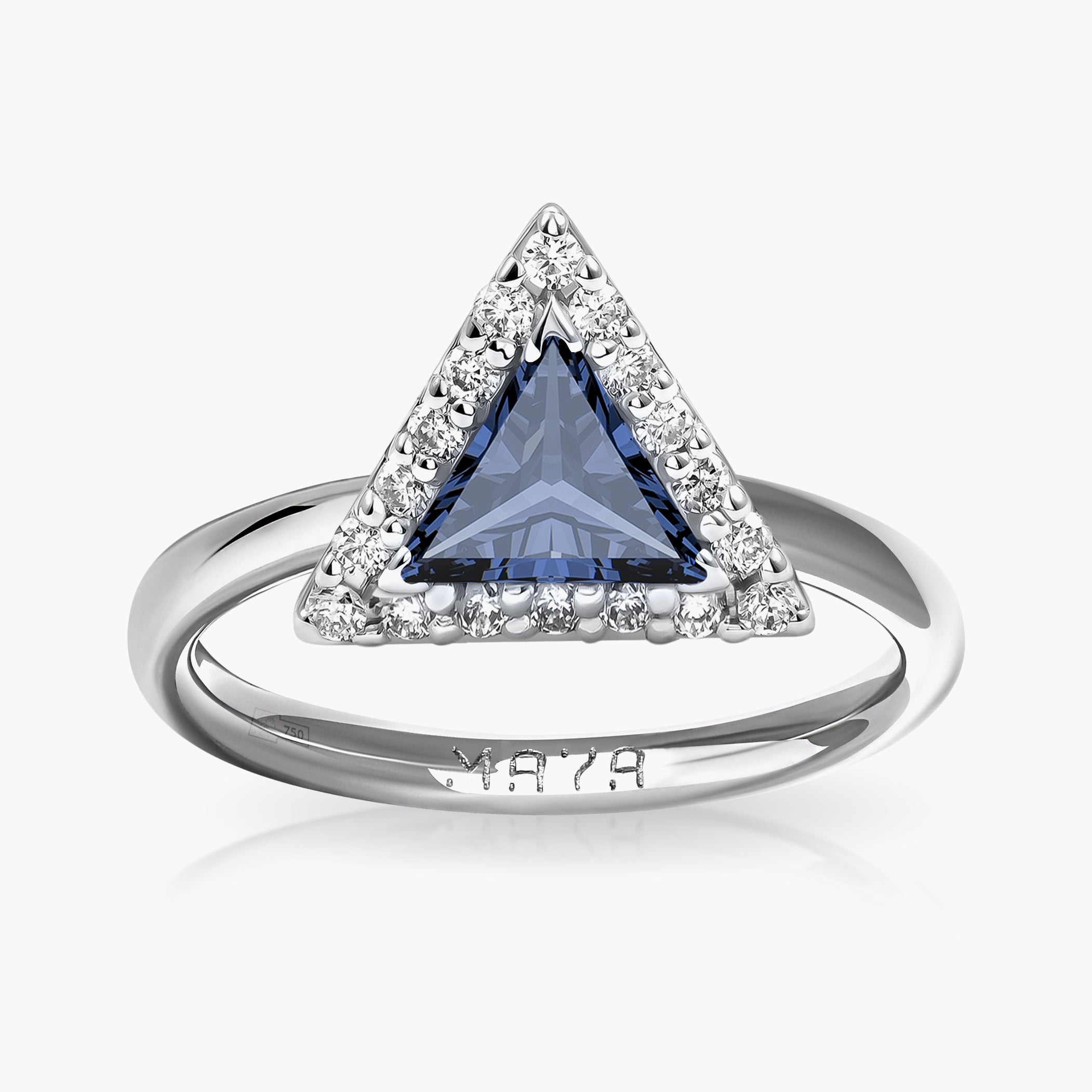 New Classic ring in 18ct white gold, with a Maya cut sapphire