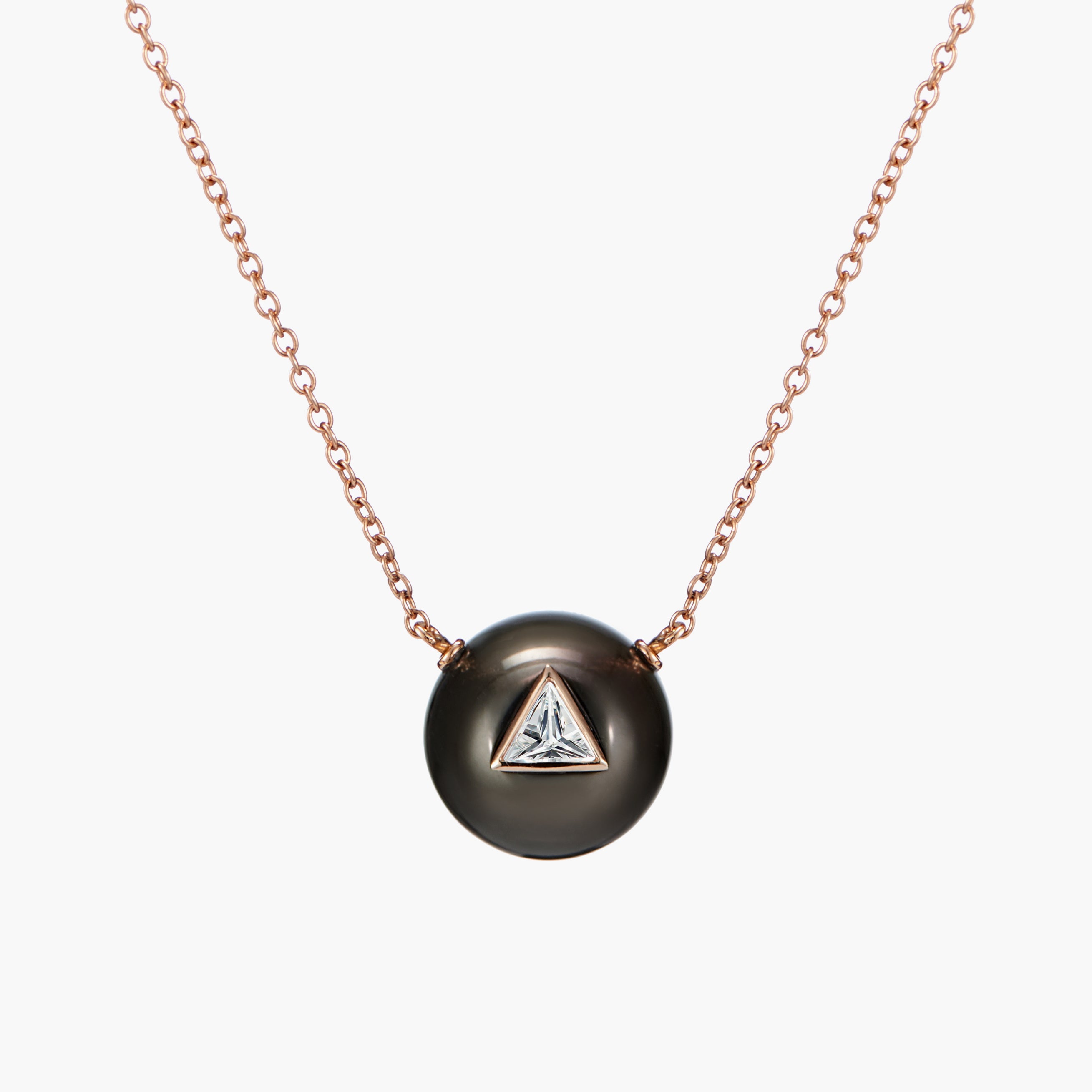 18ct rose gold Maia Star pendant, with a Tahitian black pearl, and glittering Maya cut diamond.