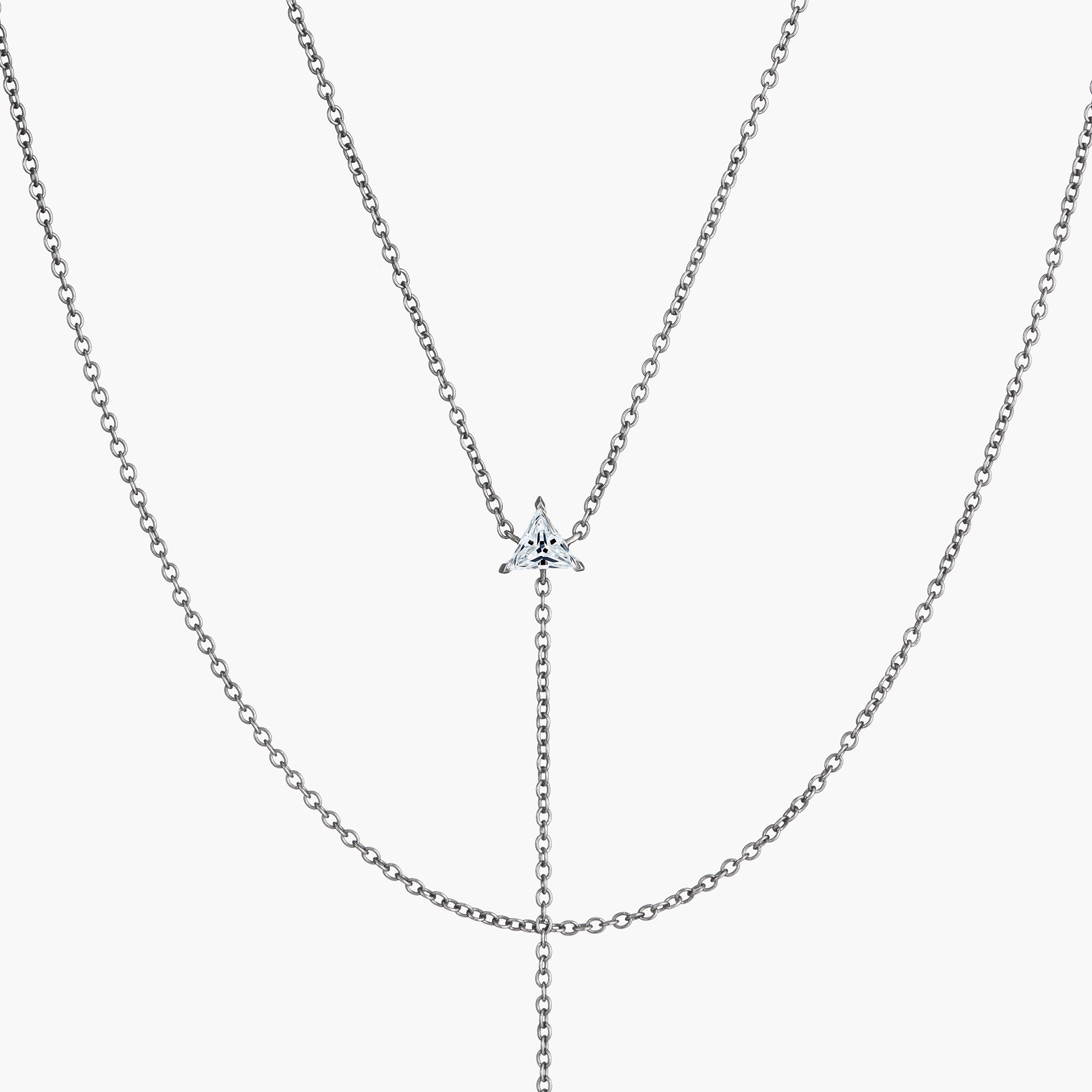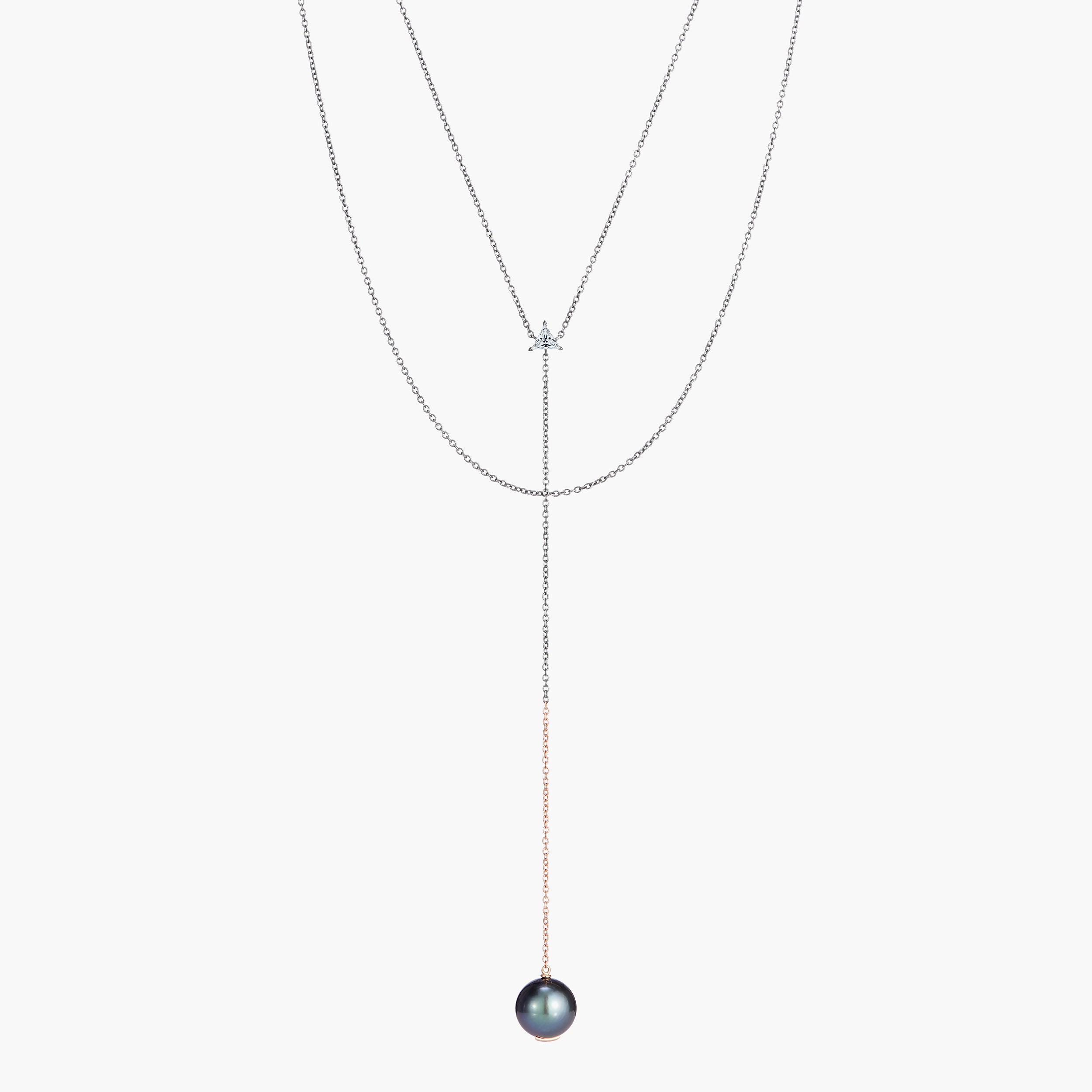 18ct white and yellow gold Y-Shaped pendant, with a Tahitian black pearl and glittering Maya cut diamond. It has an additional chain at the top of the piece.