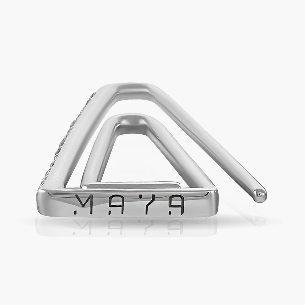 18ct white gold paperclip earring, with glittering diamonds on one side. The name is a nod to Ziggy Stardust, the alter ego of the iconic David Bowie.